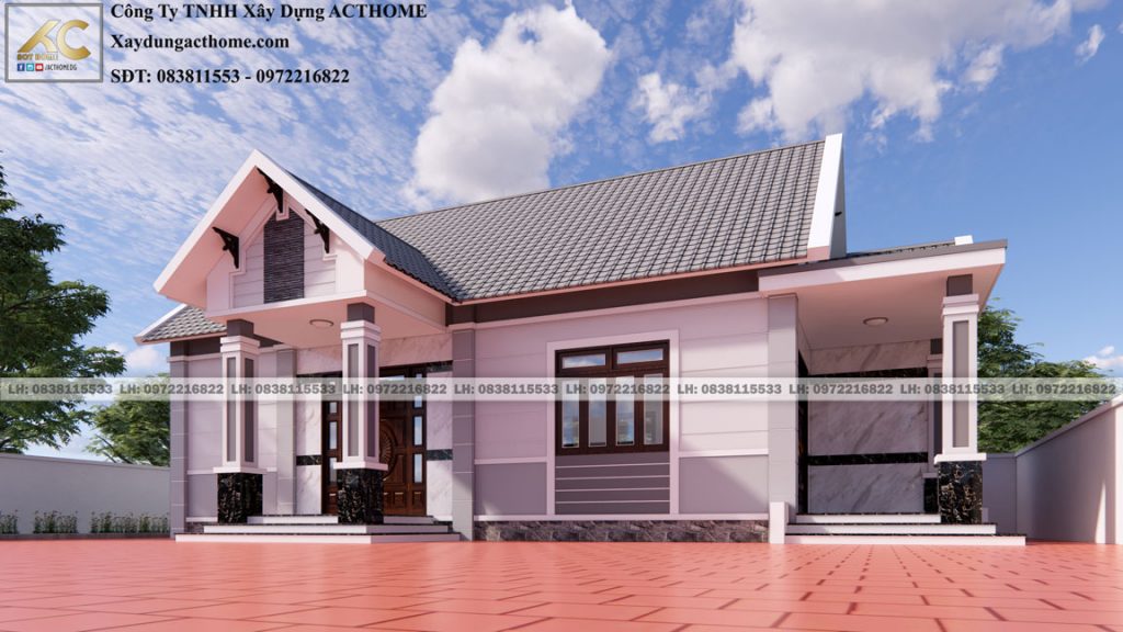 2 phòng ngủ Mẫu nhà cấp 4 mái thái – DDNC404 Posted on 04/06/202201/06/2022 by admin Mặt đứng công trình 15mx7,5m Phối cảnh công trình mái thái 2 phòng ngủ
